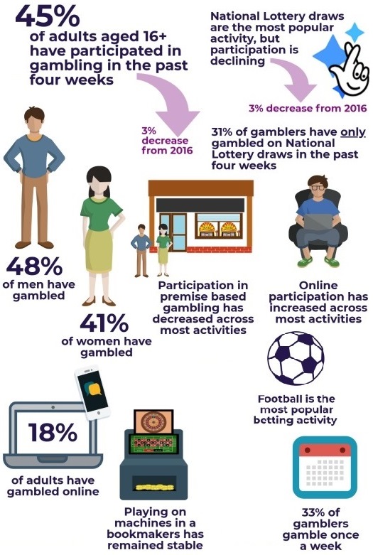 of people in the UK have participated in any form of gambling in the past four weeks (48% last year);